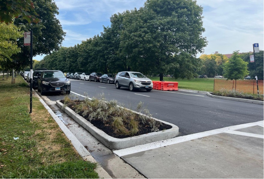 Although bump-outs encourage drivers to slow down, students and faculty have previously raised concerns that the current level of parking along Midway Plaisance may limit the effect of bump-outs on pedestrian visibility.