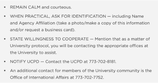 If agents enter such spaces, the University has directed students to call UCPD.
